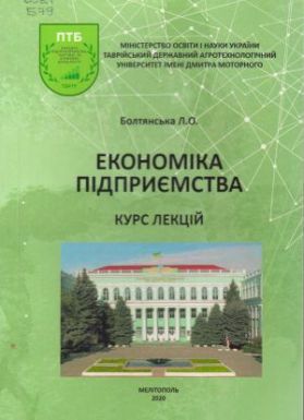 - Болтянська, Л. О. Економіка підприємства : курс лекцій / Л. О. Болтянська ; ТДАТУ. – Мелітополь, 2020. – 164 с.