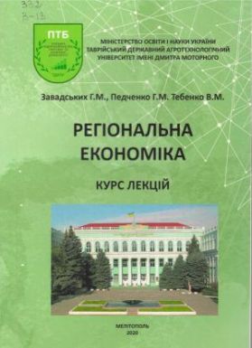 - Завадських, Г. М. Регіональна економіка : курс лекцій / Г. М. Завадських, Г. М. Педченко, В. М. Тебенко ; ТДАТУ. – Мелітополь, 2020. – 168 с.