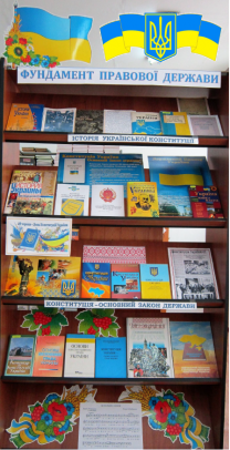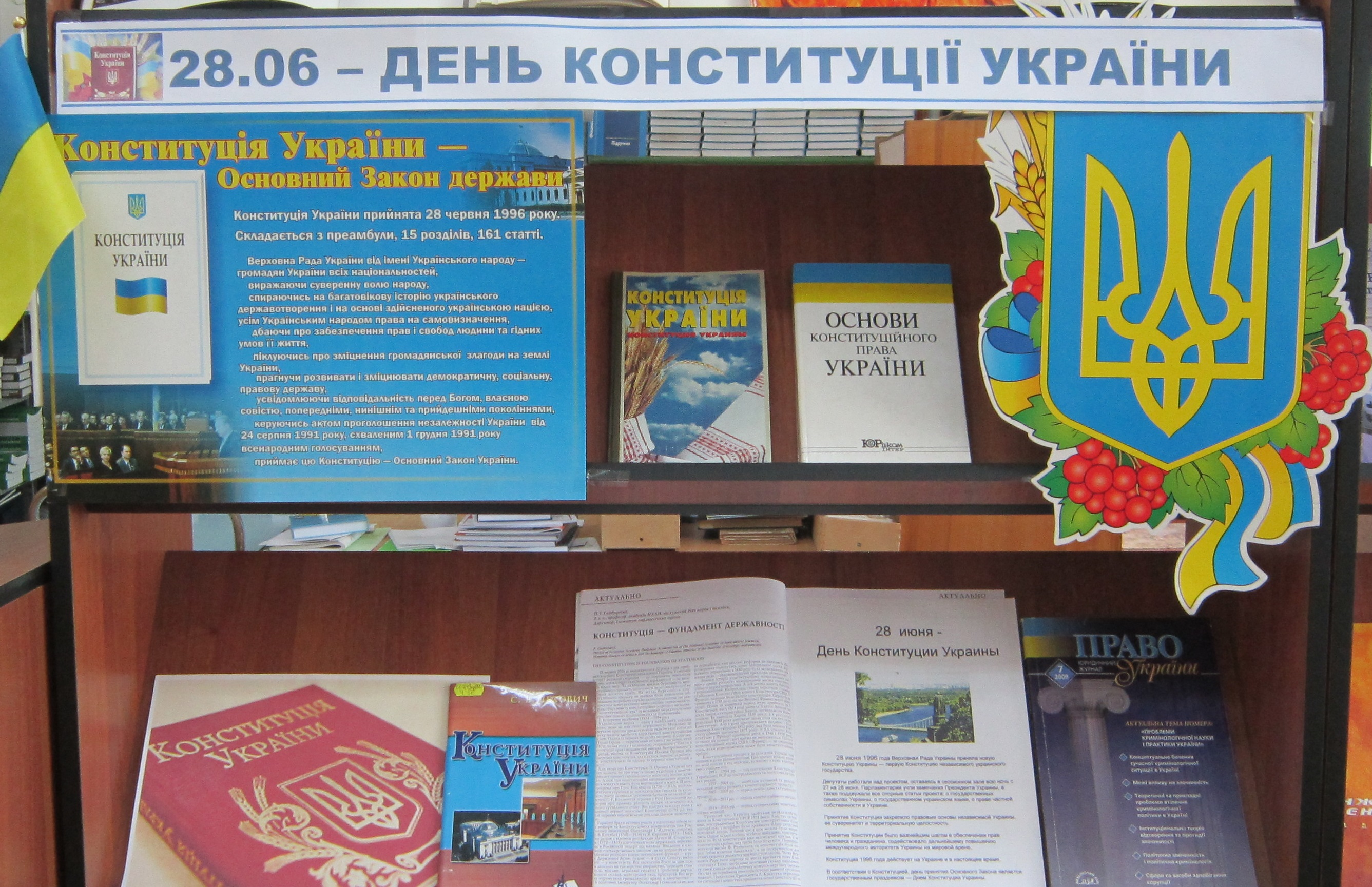 До Дня Конституції України наукова бібліотека підготувала експрес-виставку, на якій представлені видання: Конституція України, «Основи конституційного права України», «Економіка та держава», «Право України», в яких розглядаються питання «Конституція – фундамент державності», «Конституція і міжнародне право: до питання про взаємозв’язок і взаємовплив» та ін.