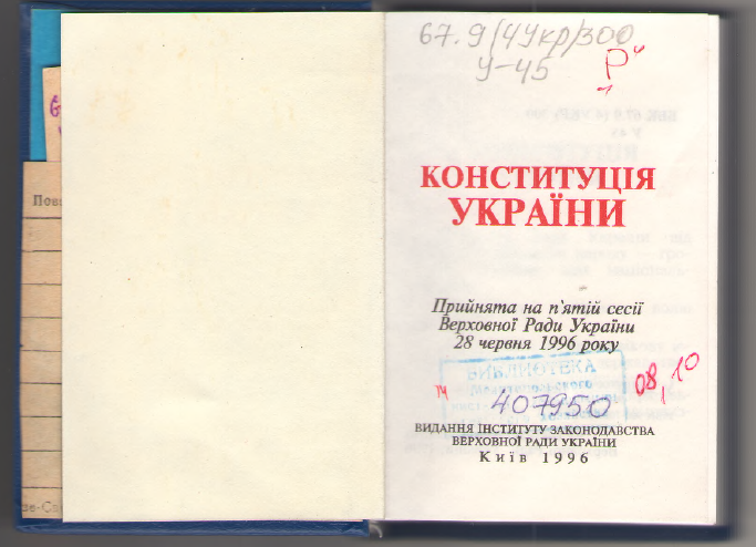 Наукова бібліотека вітає всю університетську спільноту з Днем Конституції України. Бажаємо міцного здоров’я та творчого натхнення, добробуту і затишку у ваших родинах, мудрості і далекоглядності, високих досягнень, успіхів у праці та нових звершень. Хай доля буде щасливою, а зміни на краще стануть реаліями сьогодення.