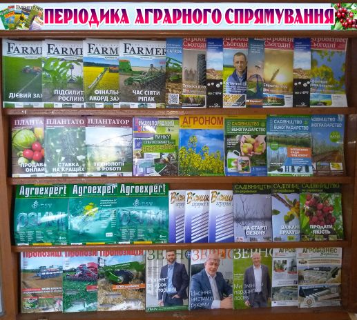 Наукова бібліотека ТДАТУ презентує тематичну виставку «Періодика аграрного спрямування». На виставці представлено періодичні видання за 2021 рік, а саме: «Агоробізнес сьогодні», «Пропозиція», «Плантатор», «Агроном», «Зерно», «Farmer», «Agroexpert» та інші.