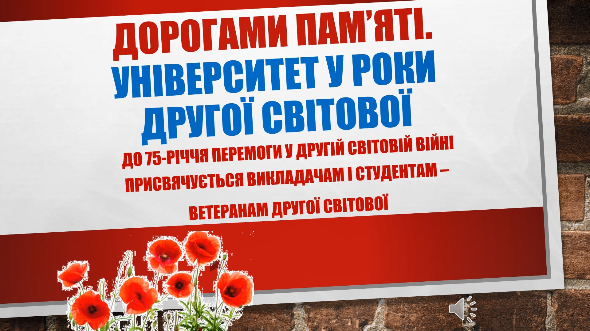 У фондах наукової бібліотеки достатньо матеріалів про Другу Світову війну – це, як документальна, так і художня література. Наприклад такі видання: Алексей Исаев «22 июня 41-го», Іван Стаднюк «Москва, 41-й», Олександ Довженко «Україна в огні», Петро Ребро «Грім під Запоріжжям», Иван Стаднюк «Война», Светлана Алексеевич «У войны не женское лицо», «Лето 1941. Україна», Федор Моргун «Перепаханные поколения», Дмитро Клюєнко «В боях за визволення України», Владимир Литвинов «Поездизночи», Ніна Казімірова «Пам’ять серця», «Год 1941» та ін.