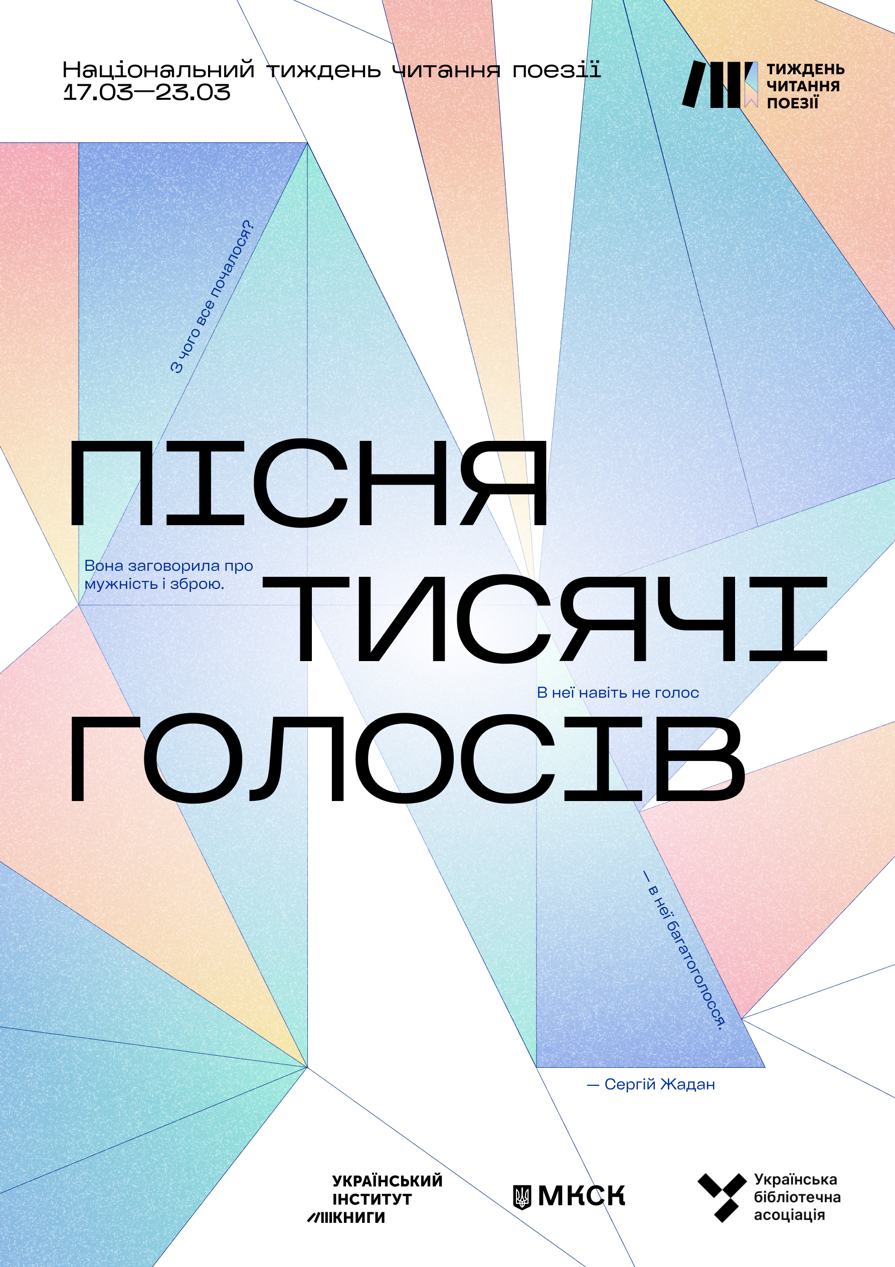 В Україні з 17 до 23 березня проходить Національний тиждень читання поезії – 2025, присвячений Всесвітньому Дню поезії. Національний тиждень читання поезії вже вдруге організовує Український інститут книги. Цьогорічна тема – “Пісня тисячі голосів”, а гаслом тижня поезії стали слова Сергія Жадана: “З чого все почалося? Вона заговорила про мужність і зброю. В неї навіть не голос – в неї багатоголосся”.
