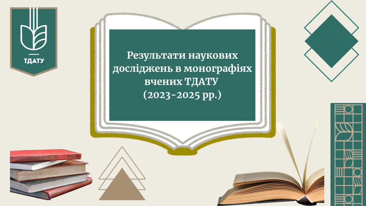 Наукова бібліотека підготувала віртуальну виставку Результати наукових досліджень в монографіях вчених ТДАТУ (2023-2025 рр.)