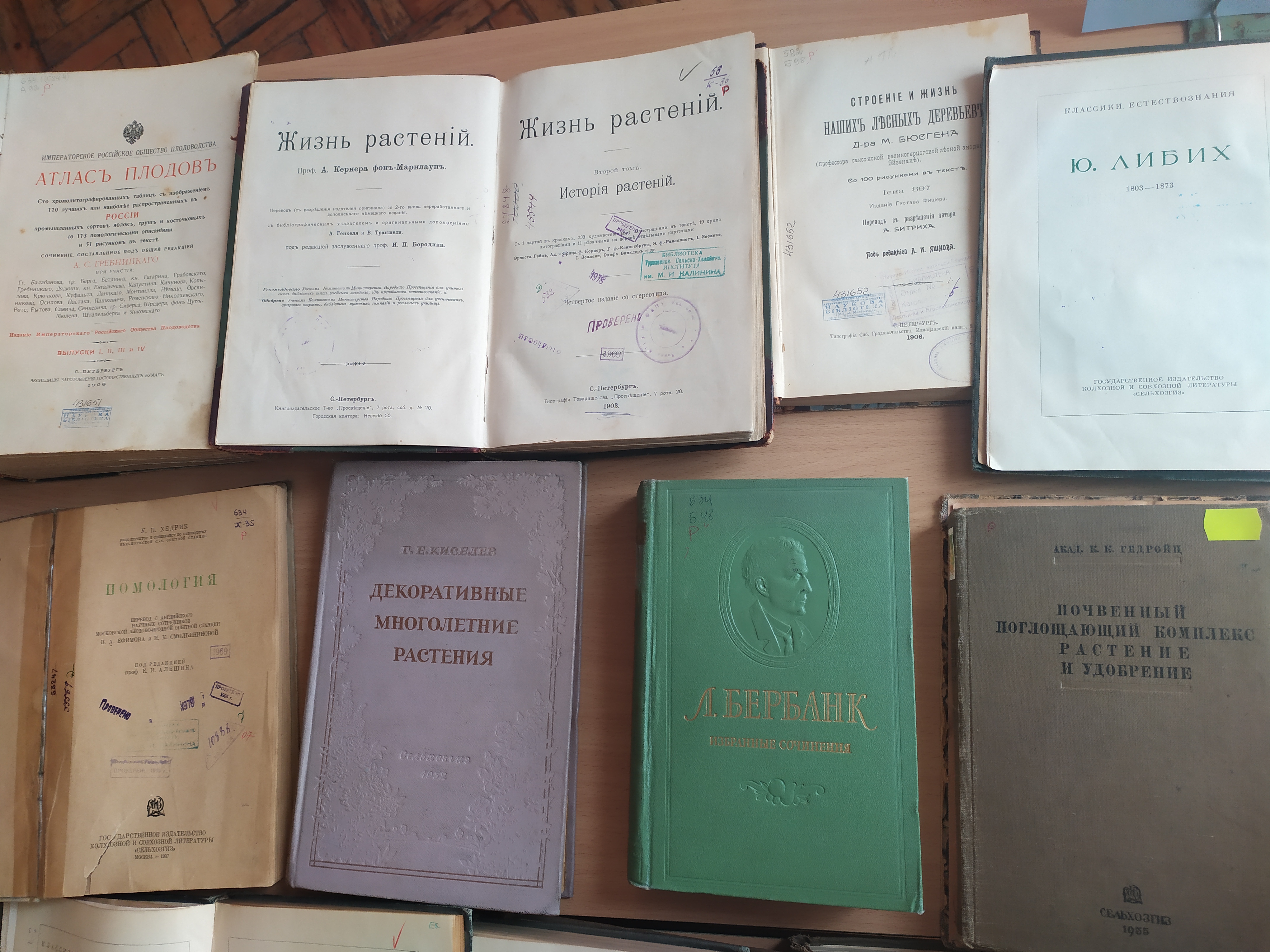 Серед представлених видань викликає зацікавленість однотомник Вибраних творів американського натураліста і селекціонера Лютера Бербанка, складений за матеріалами його робіт, виданих в 1914–1915 рр. в Нью–Йорку в дванадцяти томах під загальною назвою «Методи і відкриття і їх практичне застосування». Бербанк не отримав спеціальної освіти – він був самоучкою, дивно продуктивним аматором, завдяки працьовитості і таланту залишивши далеко позаду безліч «фахівців» – професійних селекціонерів. Основні роботи Бербанка присвячені створенню нових сортів рослин і поліпшення вже існуючих. Вчений створив новий вид сливи без кісточок, кактус без колючок, який можна вживати в їжу, горіх з тонкою шкіркою, айву з запахом ананаса, безліч декоративних рослин. Отримав понад 100 сортів слив. Бербанк читав лекції по теорії еволюції в Стенфордському університеті, був членом багатьох наукових і садівничих товариств США і Європи.