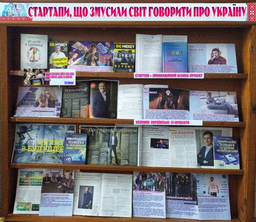 Наукова бібліотека підготувала тематичну виставку «Стартапи, що змусили світ говорити про Україну», на якій представлено книги та періодичні видання: Євген Черняк «Big Money. Принципы первых» у двох частинах, «Від ідеї до власної справи», Пітера Тіля «От нуля к единице. Как создать стартап, который изменит будущее», «Новое время страны», «Пропозиція», «Фінанси України» тощо.