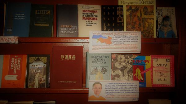 На виставці експонуються книги, в яких розповідається про дивовижну країну Китай, її економіку, політику, культуру: «Китай. История в лицах и событиях», «Китай. Поиски путей социального развития», «КНР: политика, экономика, идеология», «Китай после «культурной революции»», «Китайцы о себе», «Реформа хозяйственной системы в КНР» та інші. Також експонуються твори художньої літератури китайських письменників Лу-Синь, Лао-Ше, Бо Цзюй, У. Ченьень, Пу Сунлін та інших. Справжніми перлинами виставки є книги «Мистецтво Китаю», «Афоризми старого Китаю», збірки поезій «Цветет мэйхуа», «Китайская классическая поэзия», а також унікальна книга, яка видана в Китаї в 50-ті роки.