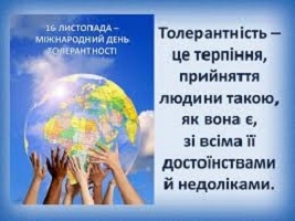 Виховання толерантності в суспільстві повинно бути спрямоване на протидію впливу, що веде до неприйняття інших. Україна – держава, в якій проживають різні національності та етнічні групи з різними релігіями, мовами та культурою.