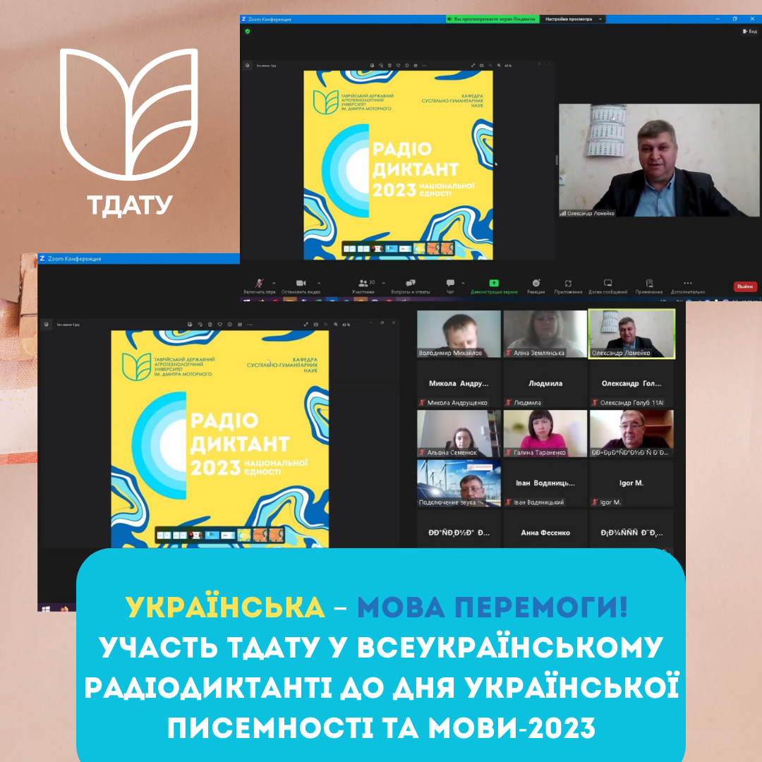 27 жовтня 2023 року об 11-00 годині відбулася уже традиційна подія, до якої долучилися співробітники і студенти Таврійського державного агротехнологічного університету імені Дмитра Моторного, усі небайдужі, усі, хто серцем відчуває і хвилюється за долю нашої України та її мови.