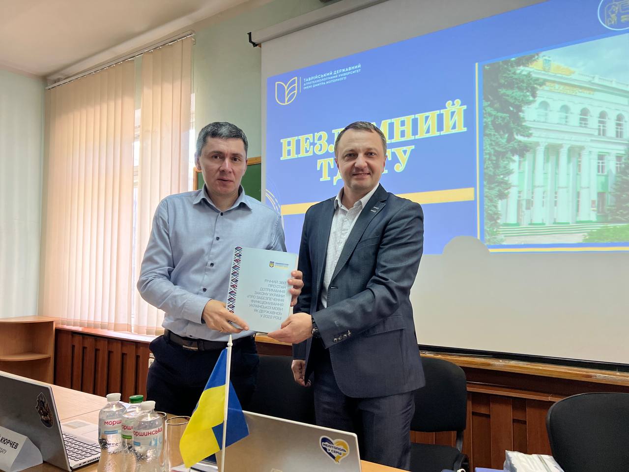 21 травня Таврійський державний агротехнологічний університет імені Дмитра Моторного відвідав Уповноважений із захисту державної мови, член Наглядової ради ТДАТУ Тарас Кремінь. Зустріч проходила у змішаному форматі.