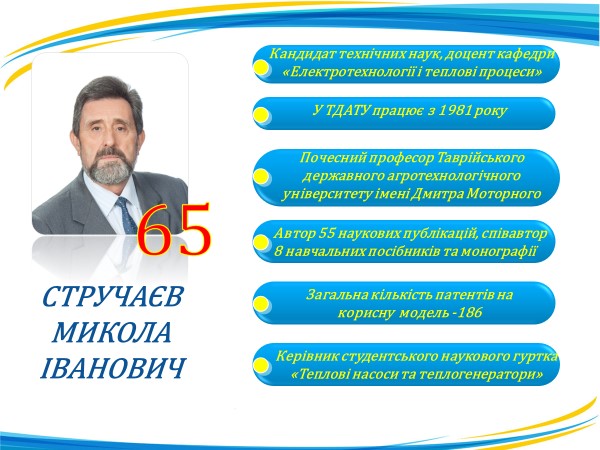 Наукова бібліотека вітає з ювілеєм кандидата технічних наук, Почесного професора Таврійського державного агротехнологічного університету імені Дмитра Моторного СТРУЧАЄВА МИКОЛУ ІВАНОВИЧА!