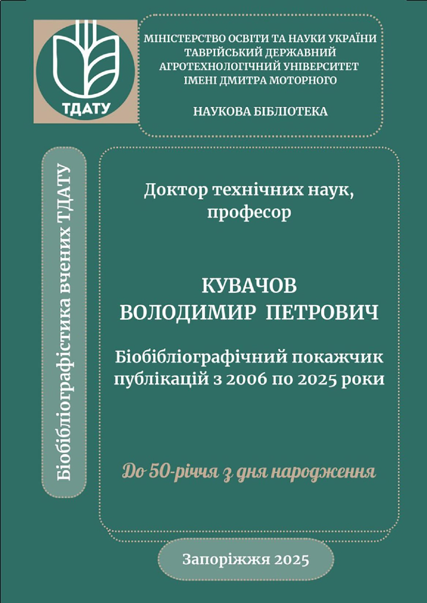 Електронна версія покажчика Кувачов Володимир Петрович: біобібліографічний покажчик публікацій з 2006 по 2025 роки представлена в інституційному репозитарії ТДАТУ elarTSATU.
