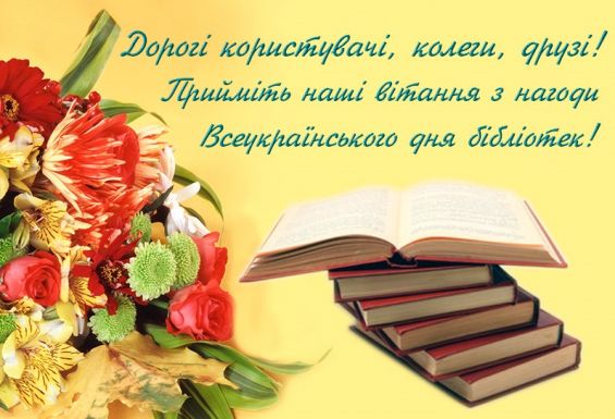 Шановні бібліотекарі, щиро вітаємо вас з професійним святом духовності, мудрості і знань! Нехай ваше професійне життя буде різноманітним та насиченим приємними моментами й цікавими подіями.