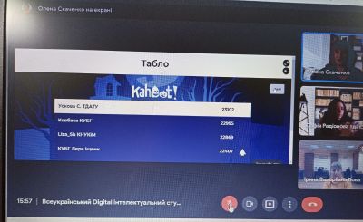 Батл проходив на платформі Kahoot. У заході взяли участь представники всіх факультетів ТДАТУ: Світлана Ускова – 21 АІ – Механіко-технологічний факультет, капітан команди; Єгор Драголов – 21ГМ – Механіко-технологічний факультет; Софія Радіонова 21 ХТ – Факультет агротехнологій та екології; Євген Назаров – 21 СКН – Факультет енергетики і комп’ютерних технологій; Микола Кісельов – 11 ПУ – Факультет економіки та бізнесу. Модератор команди від наукової бібліотеки – Світлана Голодова – завідуюча відділом НБ.