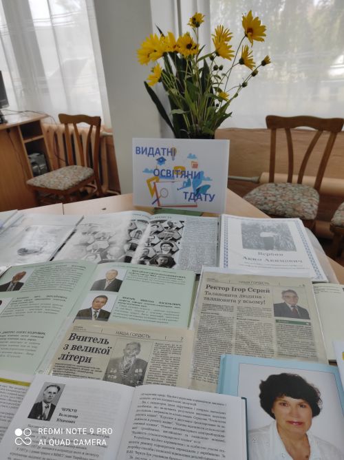З нагоди Дня працівників освіти наукова бібліотека підготувала виставку «Видатні освітяни ТДАТУ», яку можна переглянути завітавши у відділ НБІР (каб. № 20). На виставці представлені матеріали про науково-педагогічну еліту нашого закладу освіти. Доктор сільськогосподарських наук, професор Аким Акимович Вербін у роки Другої світової війни, будучи евакуйованим з нашими студентами в Ашхабат, викладав землеробство ще й студентам  Киргизького сільськогосподарського інституту. Закінчили МІМСГ і залишились в ньому в якості викладачів д. т. н., професор В. В. Овчаров, к. т. н. В. В. Овечко, к. т. н. В. Ю. Черкун та багато інших. Сьогоднішня плеяда викладачів – це доктори та кандидати наук, професори, які успішно поєднують наукову та педпгогічну діяльність, приймають активну участь у міжнародних проєктах, сипозіумах, конференціях. Їм є що передати майбутньому поколінню і вони цим щедро діляться!