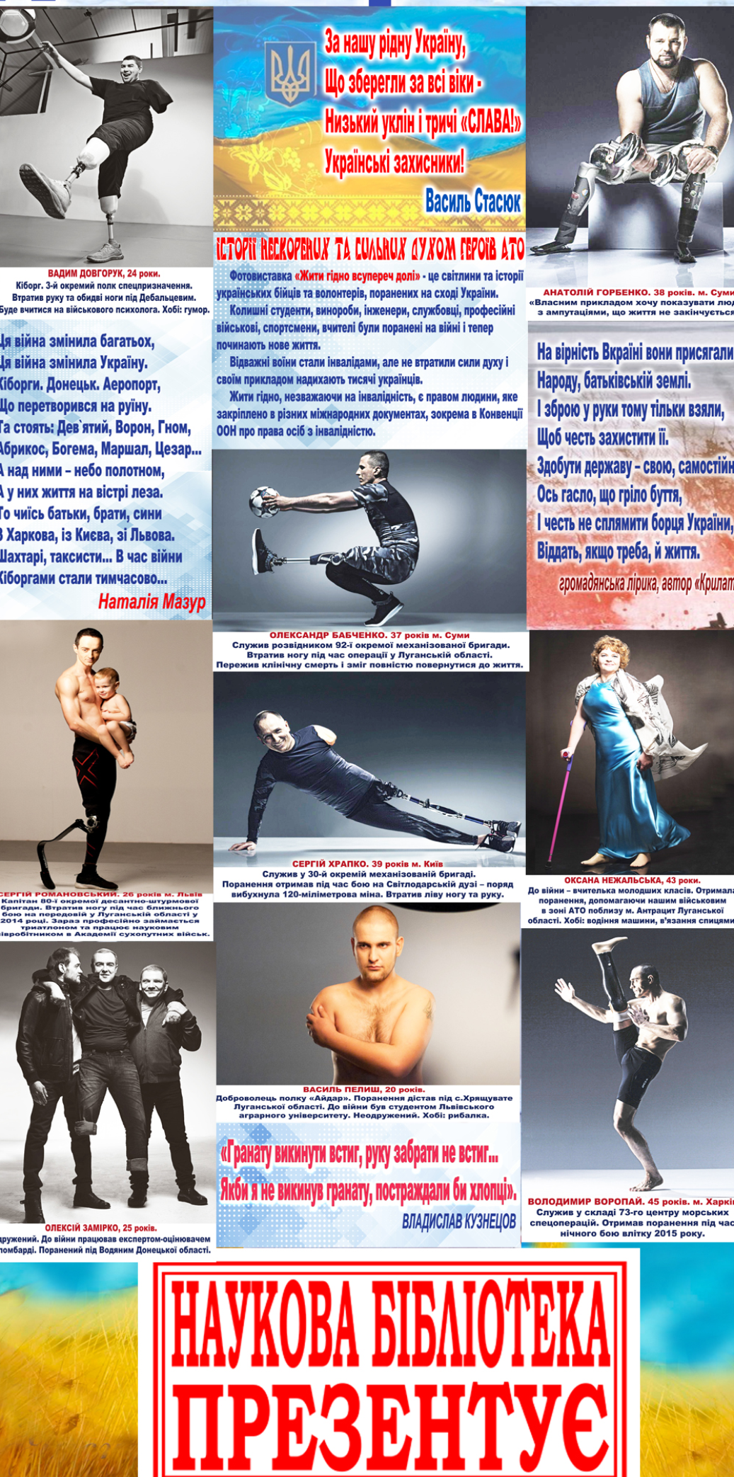 До Дня Збройних Сил України, який відзначається 6 грудня, наукова бібліотека підготувала стендову фотовиставку «Жити гідно всупереч долі», яка представлена на І поверсі головного корпусу університета.