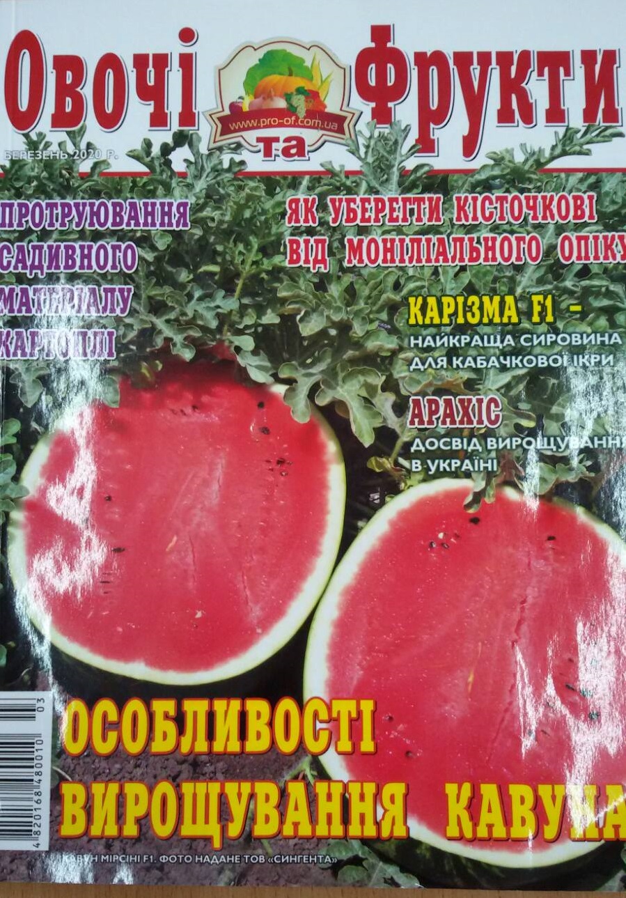Нінова Г. В.Способи живлення при вирощуванні кавуна у богарних умовах південного степу України / Г. В. Нінова, Т. В. Герасько // Овочі та фрукти . – 2020 . – № 3 . – С. 20-22. Цю публікацію написали к.с.г.н., доценти кафедри «Плодоовочівництва, виноградарства та біохімії» нашого університету. Найбільш здатними до накопичення нітратів є гарбузові: кавуни, дині…Нітрати, потрапляючи до організму є небезпечним канцерогеном. Автори акцентують увагу на те, що система внесення добрив повинна відповідати грунтово-екологічним умовам, спеціалізації сівозмін, чергуванню культур, їх біологічним особливостям.