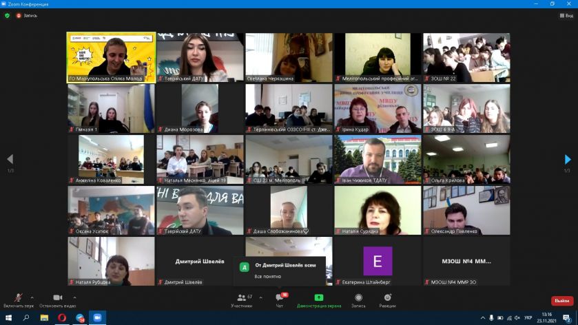 23 листопада студентська молодь Мелітополя взяла участь в ознайомчий онлайн-зустрічі «Будуй своє майбутнє». Модератором заходу виступив локальний адміністратор проекту «Розширення можливостей працевлаштування молоді та жінок в Азовському регіоні» в Мелітополі, проєктний менеджер КУ «Агенція розвитку Мелітополя» Олександр Мостовий.