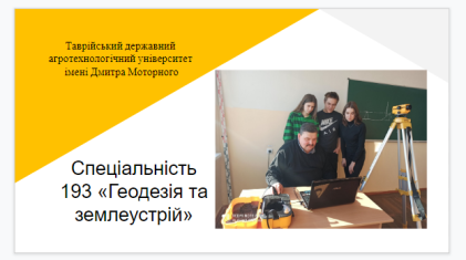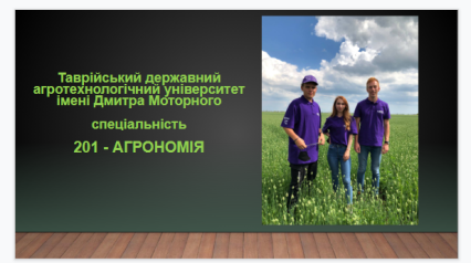 На першій зустрічі науковці університету представили 5 затребуваних спеціальностей, за якими можна отримати вищу освіту у ТДАТУ: Агроінженерія, Агрономія, Екологія, Садівництво і виноградарство та Геодезія і землеустрій.
