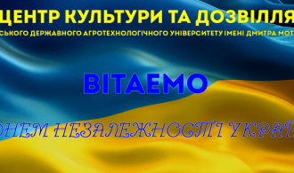 Центр культури і дозвілля Таврійського державного агротехнологічного університету імені Дмитра Моторного вітає усіх з 30-річчям Незалежності України. До цієї знаменної дати творчі колективи ЦКІД підготували музичне привітання. […]