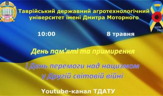 Креативна команда Центру культури та дозвілля підготувала творчу роботу до Дня Пам’яті та примирення і Дня перемоги над нацизмом у Другій світовій війні “Пам’ятаємо. Перемагаємо”. Дивіться на Youtube-каналі ТДАТУ 8 травня о 10:00.