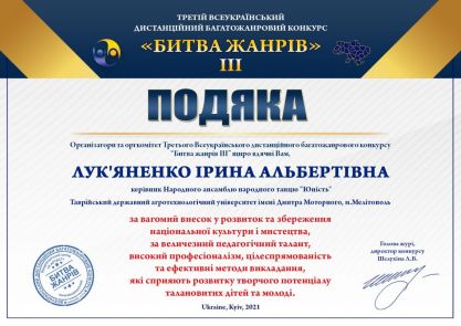 lll Всеукраїнський дистанційний багатожанровий конкурс “Битва жанрів III ” 2021