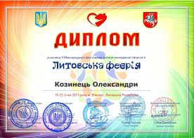 II Міжнародний фестиваль дитячо-молодіжної творчості «Литовська феєрія» м. Вільнюс 2017 р.