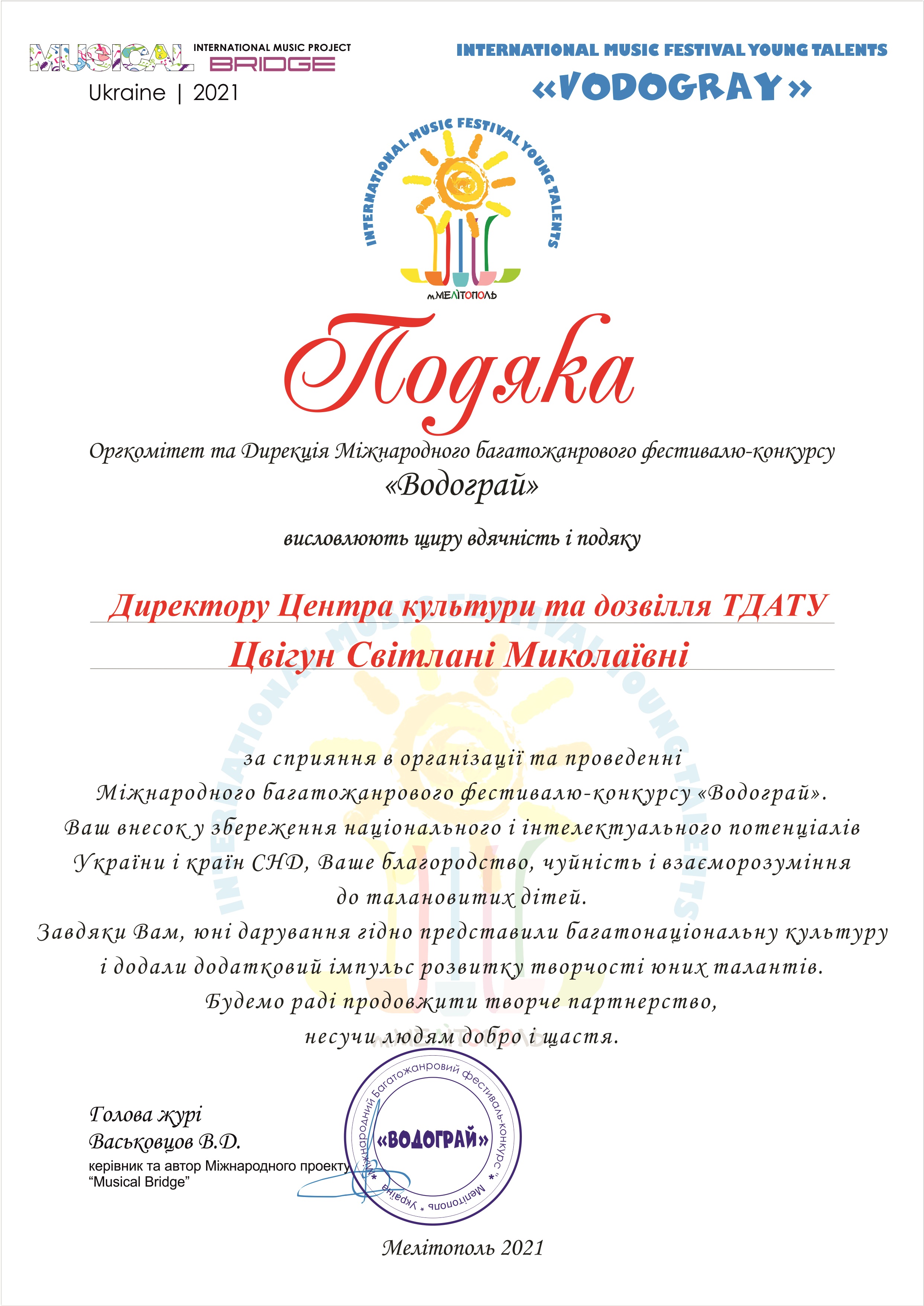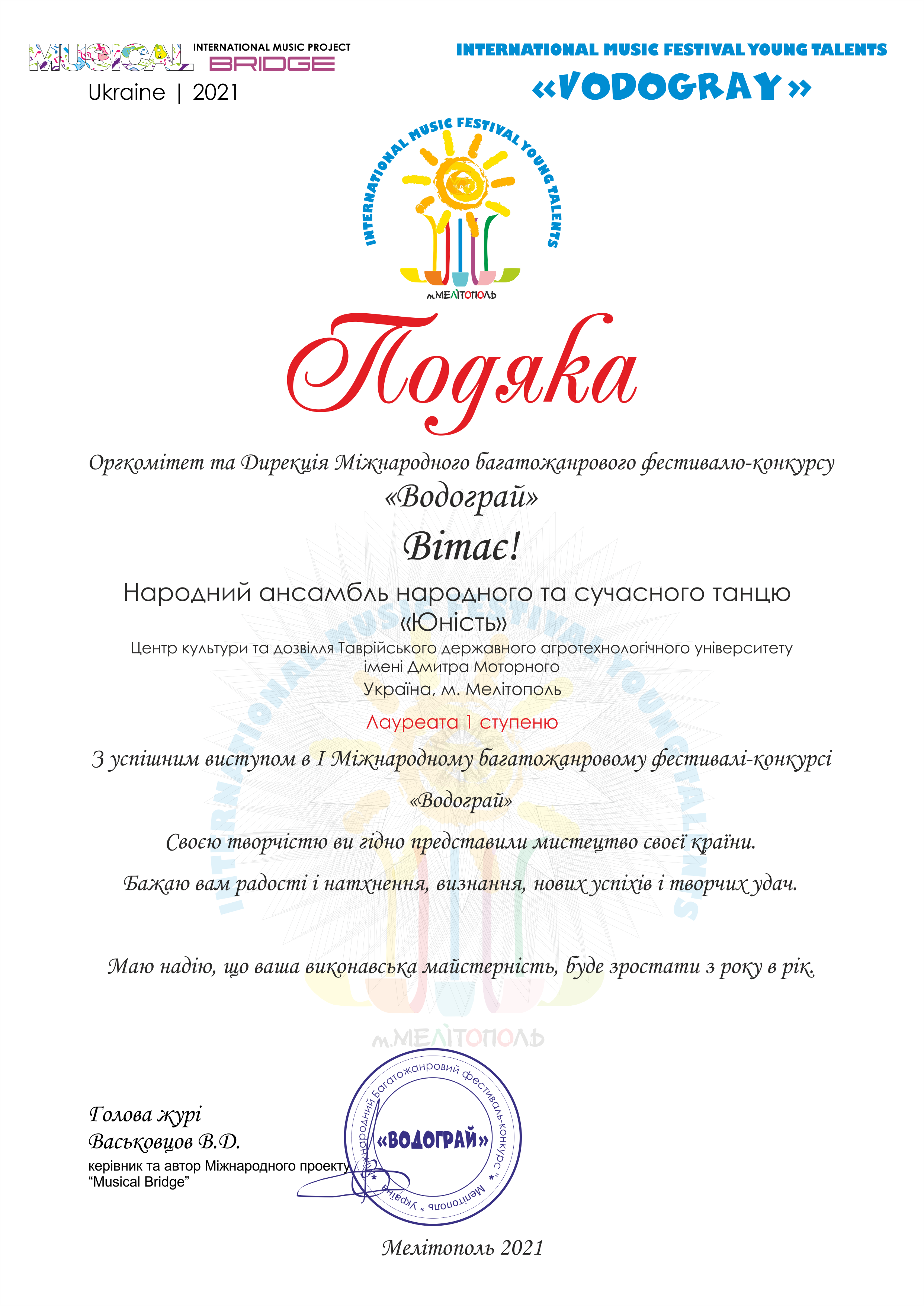 I міжнародний багатожанровий фестиваль-конкурс “Водограй” 2021 р.