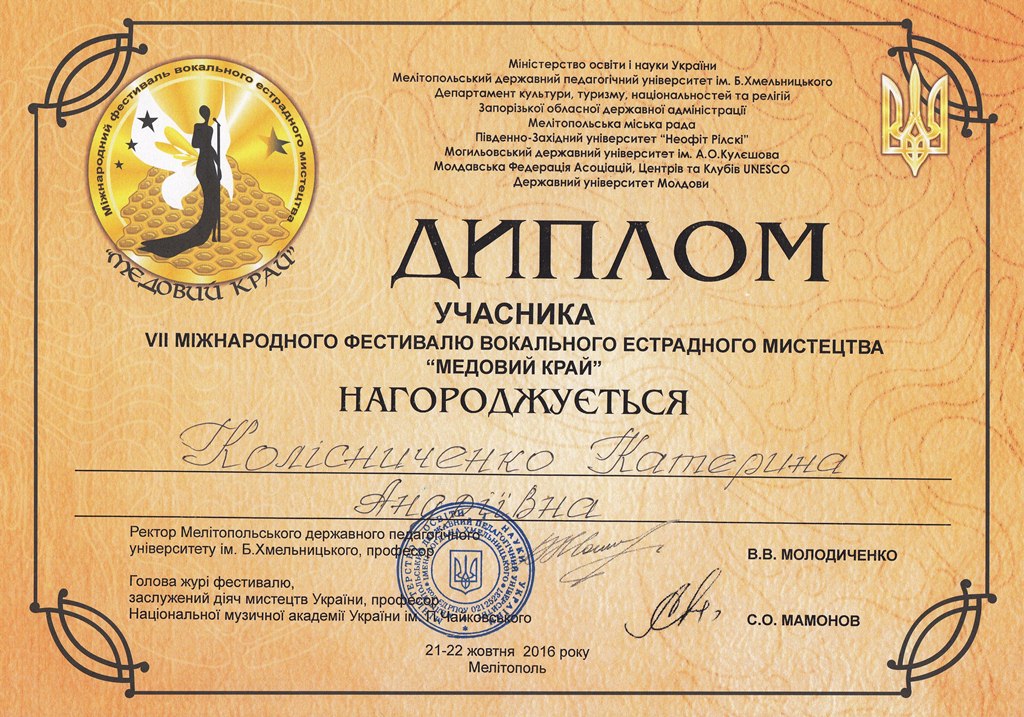 VII Міжнародний фестиваль вокального естрадного мистецтва «Медовий край» 2016 р.