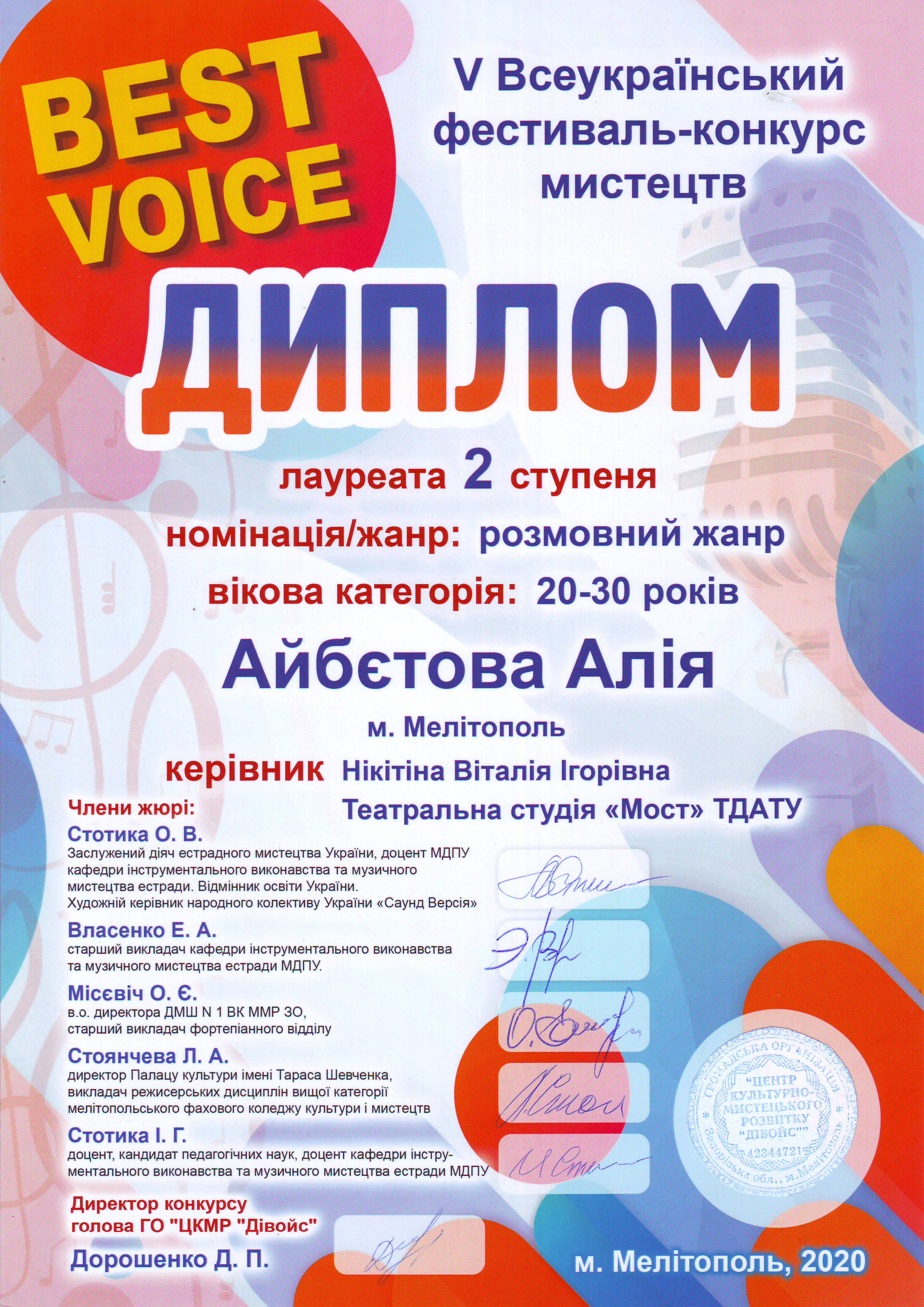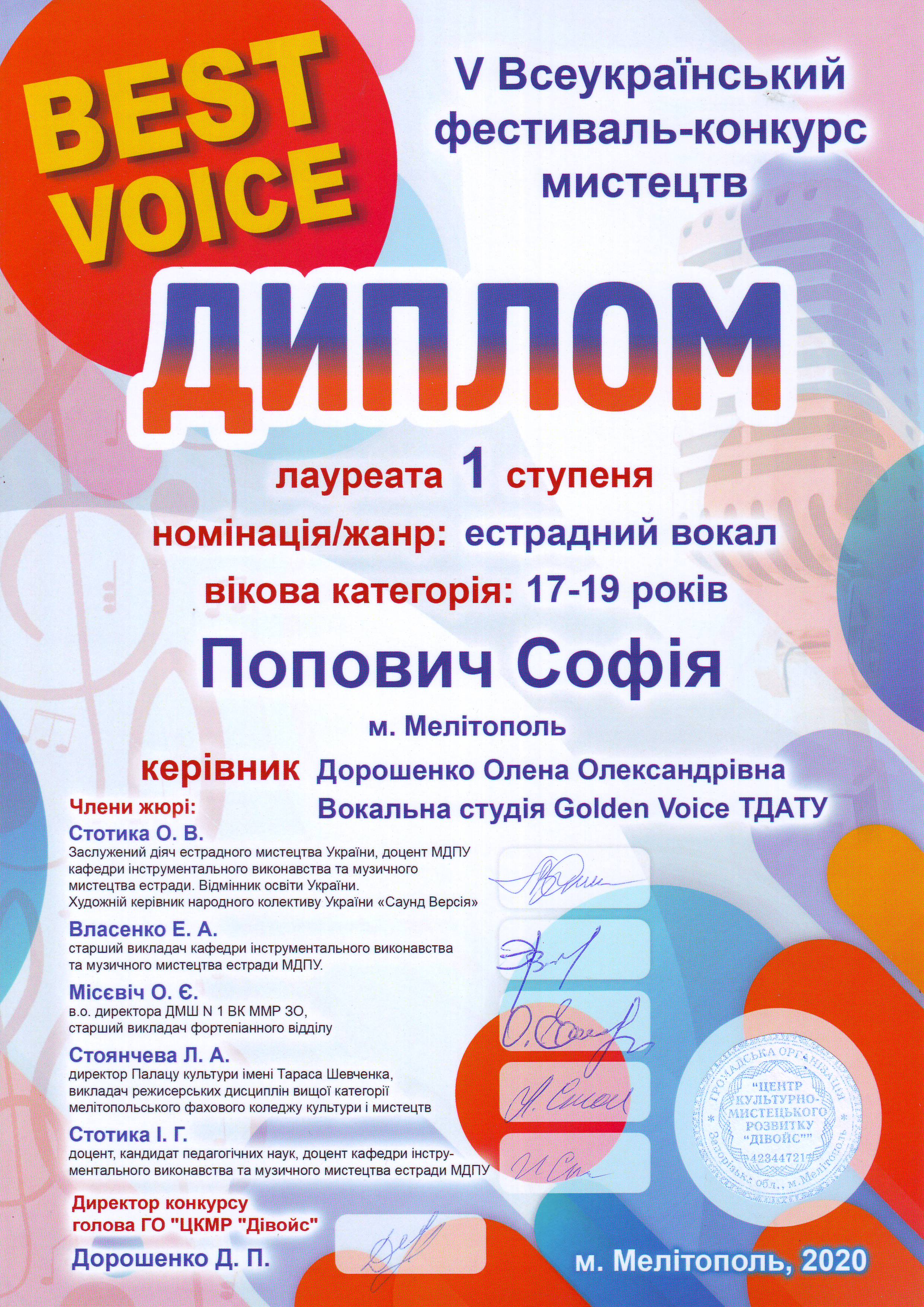 V Всеукраїнський фестиваль-конкурс мистецтв «BEST VOICE» 2020 р.