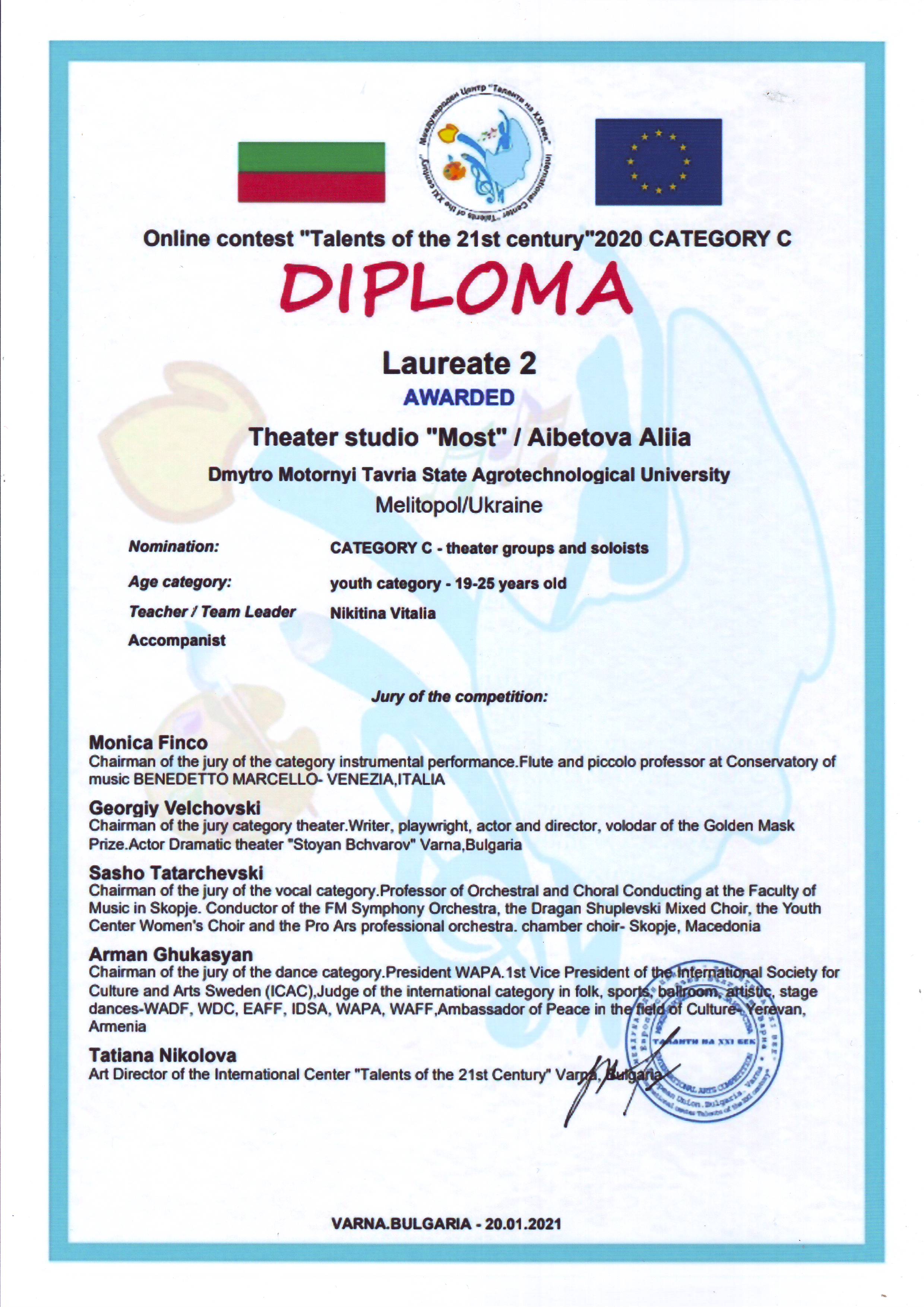 Міжнародний онлайн-конкурс “Talents of the 21st century” 2021 р.
