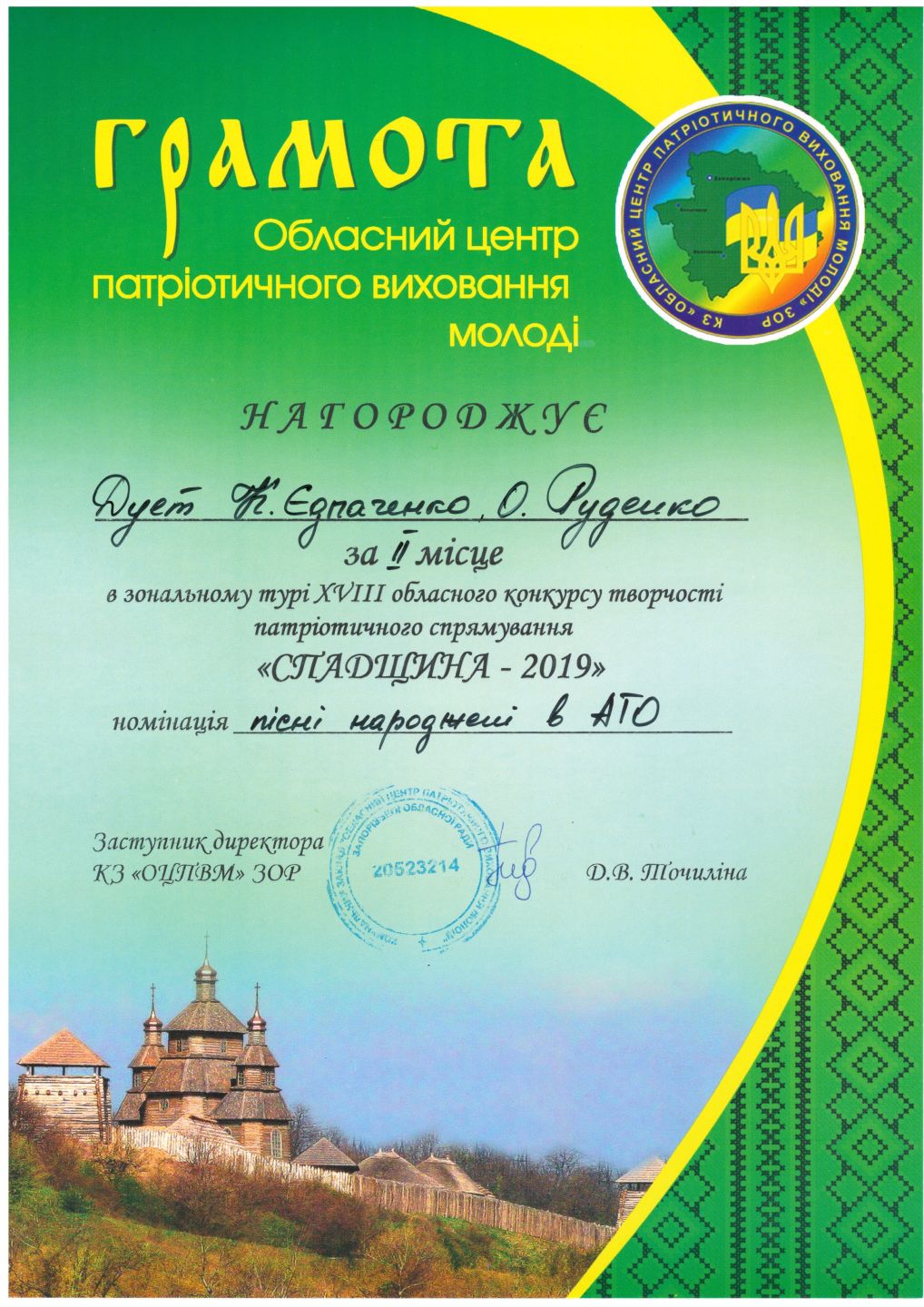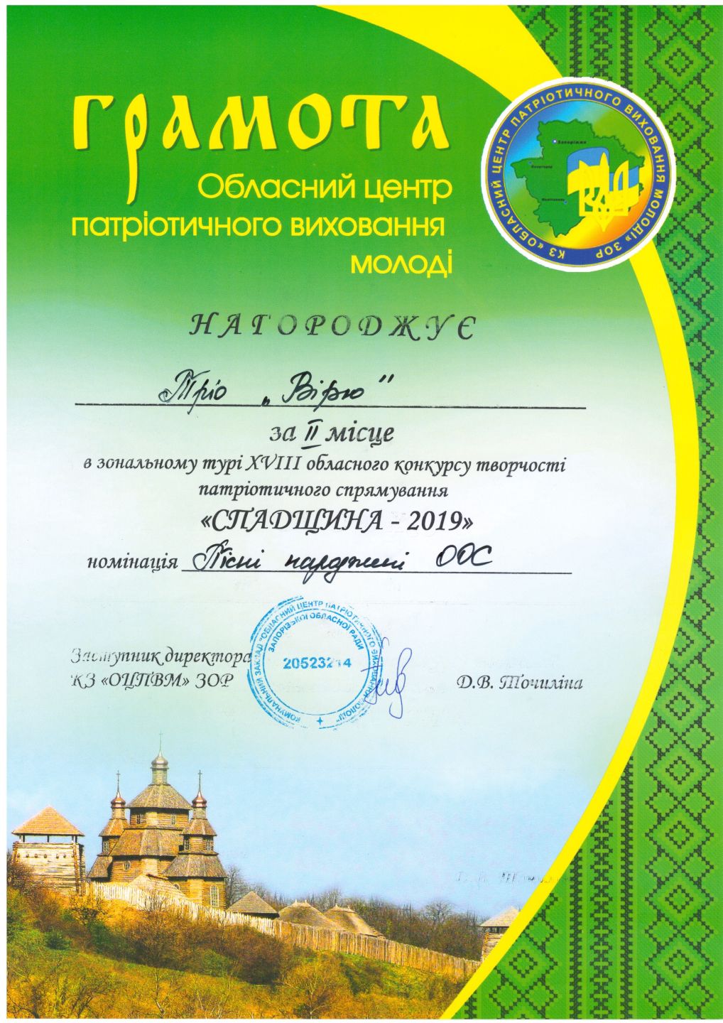 XVIII Обласний конкурс творчості патріотичного спрямування «Спадщина 2019»