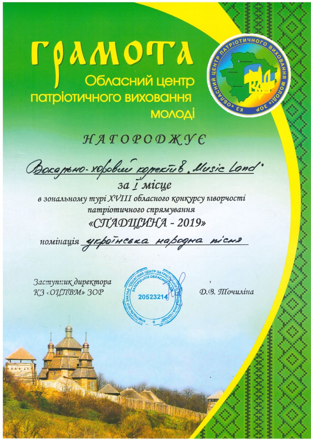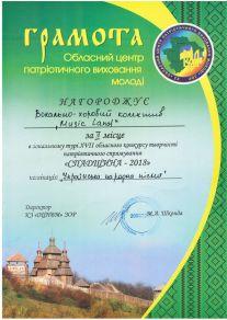 - Вокально-хоровий колектив “Music Land” – II місце у номінації “Українська народна пісня”