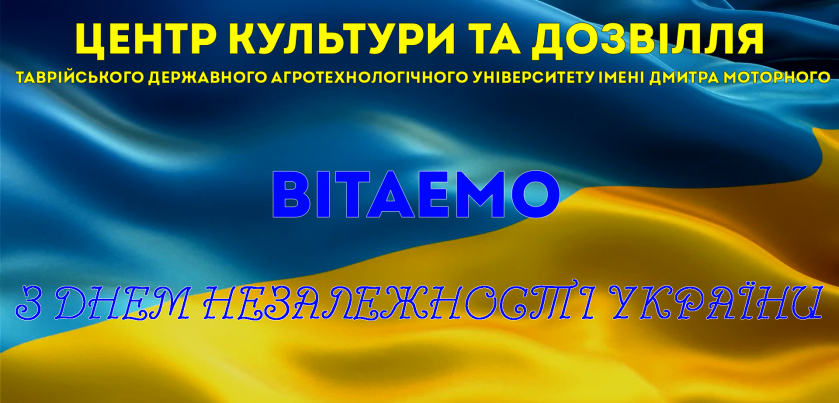 Центр культури і дозвілля Таврійського державного агротехнологічного університету імені Дмитра Моторного вітає усіх з 30-річчям Незалежності України.