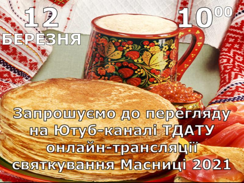 Креативна команда Центру культури і дозвілля ТДАТУ разом з фахівцями відділу технічних засобів забезпечення навчального процесу та інформації завершила підготовку онлайн-заходу з нагоди святкування Масниці.