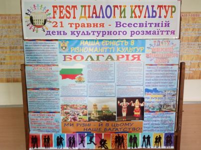 Сьогодні в ТДАТУ – день болгарської культури «Балканська перлина». До вашої уваги пропонуються локації: тематична виставка «Палітра культур України» (демонструється – наукова бібліотека – читальний зал), інформаційна виставка (головний корпус, перший поверх), фуд-корт -студкафе запрошує скуштувати болгарські смаколики.