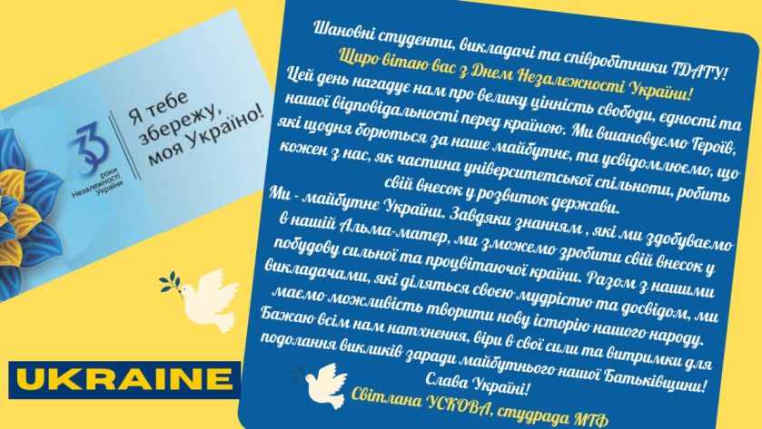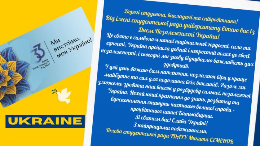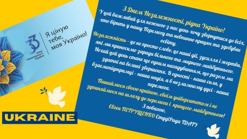 Університетська родино, у день величного свята незалежності України, приймай вітання від студентства ТДАТУ!