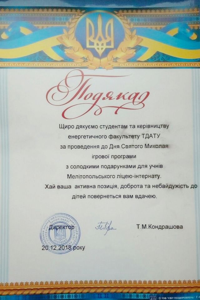 День святого Миколая для дітей «КЗ «Мелітопольський ліцей-інтернат ІІ-ІІІ ст.» Запорізької облради
