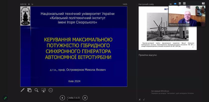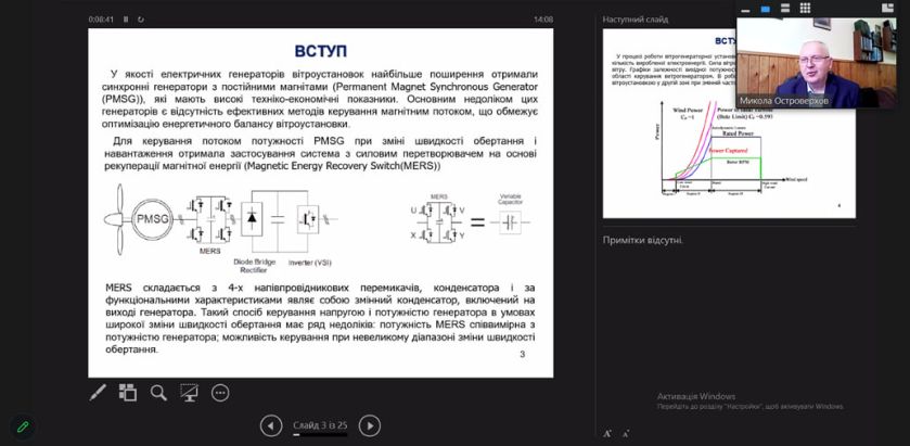 Лекція була на тему «Керування максимальною потужністю гібридного синхронного генератора автономної вітротурбіни». Вітроенергетика – це перспективний напрям енергетики та інженерії з точки зору екології та економіки, тому що використовує відновлювальний ресурс – вітер. В наш час в Україні вітроенергетичні установки отримали велике розповсюдження, це пов’язано як із здорожченням палива для теплових електростанцій, так із складною ситуацією в енергетичній сфері з генерацією електроенергії у воєнний час.