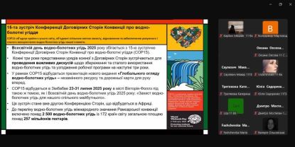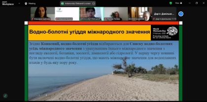 Тематика є надзвичайно актуальною, мета – привернути увагу до високопродуктивної екосистеми, яка перебуває під загрозою зникнення. Студенти та викладачі мали можливість ознайомитися з законодавчими актами, які регламентують використання, охорону, захист водно-болотних угідь, збереження рідкісних видів. Цікаво було почути про класифікацію та видове різноманіття цих екосистем, їх значення для людини та для біосфери в цілому.