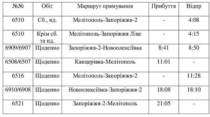 Розклад електричок по станції Мелітополь дивіться нижче.