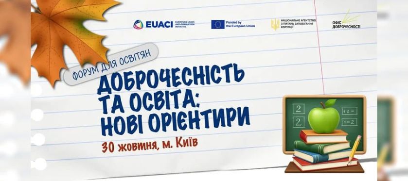 30 жовтня 2025 року відбудеться форум «Доброчесність та освіта: нові орієнтири». Захід має стати майданчиком для обговорення нових підходів до розвитку культури доброчесності в українській освіті.