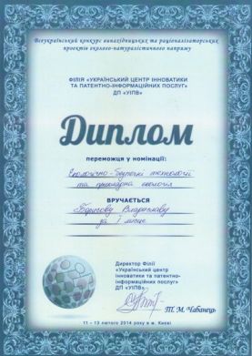 3. Артюх Антон зайняв І місце у номінації «Екологічно-безпечні технології та прикладна екологія».
