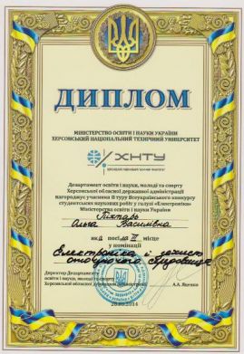 У ІІ турі Всеукраїнського конкурсу студентських наукових робіт у галузі «Електроніка» Піхтарь Ольга посіла ІІІ місце у номінації «Електроніка і захист оточуючого середовища».