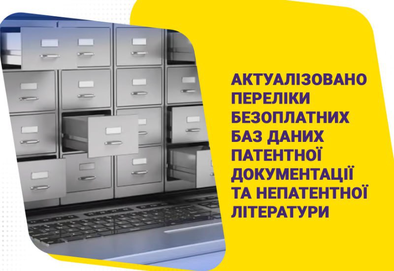Український національний офіс інтелектуальної власності та інновацій опублікував актуалізовані переліки безоплатних баз даних патентної документації та непатентної літератури, які стануть у нагоді при проведенні патентно-інформаційних досліджень.