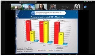 • спеціальність 141 Електроенергетика, електротехніка та електромеханіка: допущено – 73 здобувача, атестовано – 73 здобувача, успішність – 100%, середній бал – 3,72, якість знань – 53%, кількість дипломів з відзнакою -1;