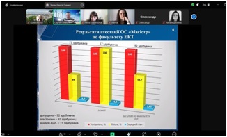 По першому питанню виступив декан факультету та доповів про результати атестації здобувачів другого (магістерського) рівня вищої освіти, відзначив найкращі роботи певних випускників. Результати атестації наступні: