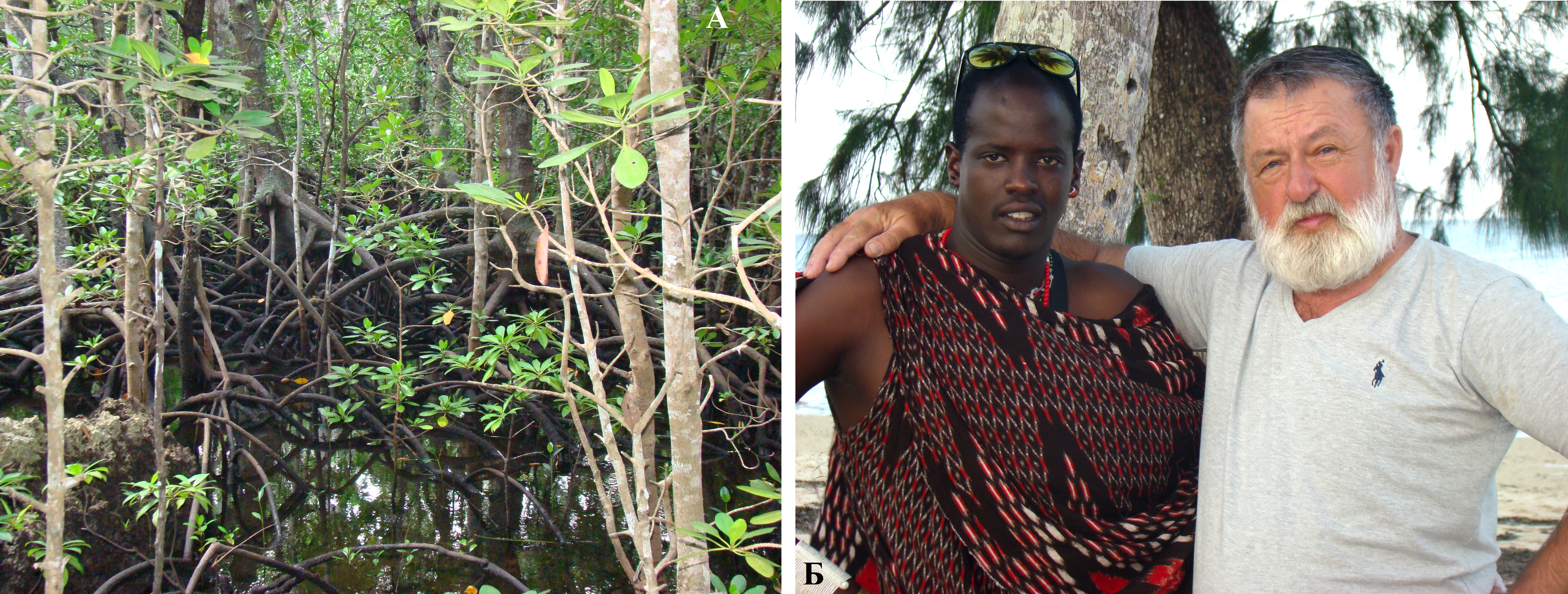 Рис. 15 У НП «Jozani Chwaka Bay» охороняються тропічні та мангрові ліси (А); охорону здійснюють масаї (Б)