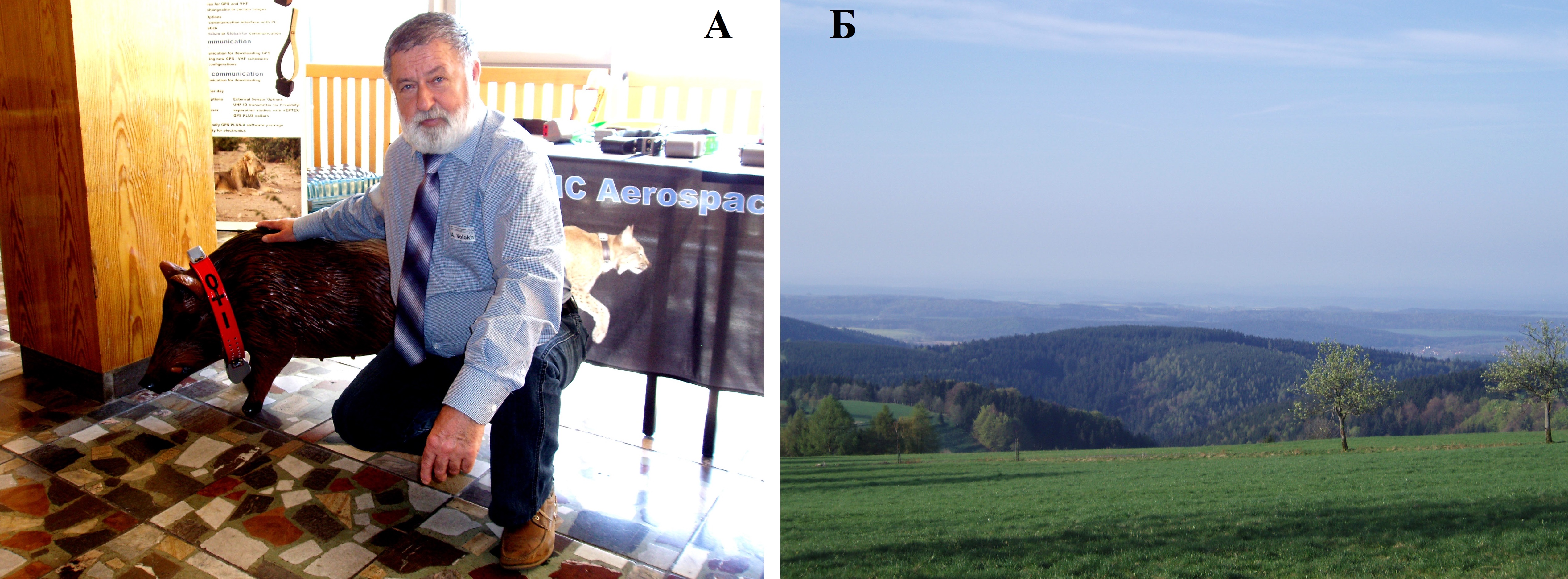 Рис. 16 Прилади агентства «Vectronik Aerospaсe»для космічного спостереження за тваринами (А); ландшафти НП«Тюрингський ліс» (Б)