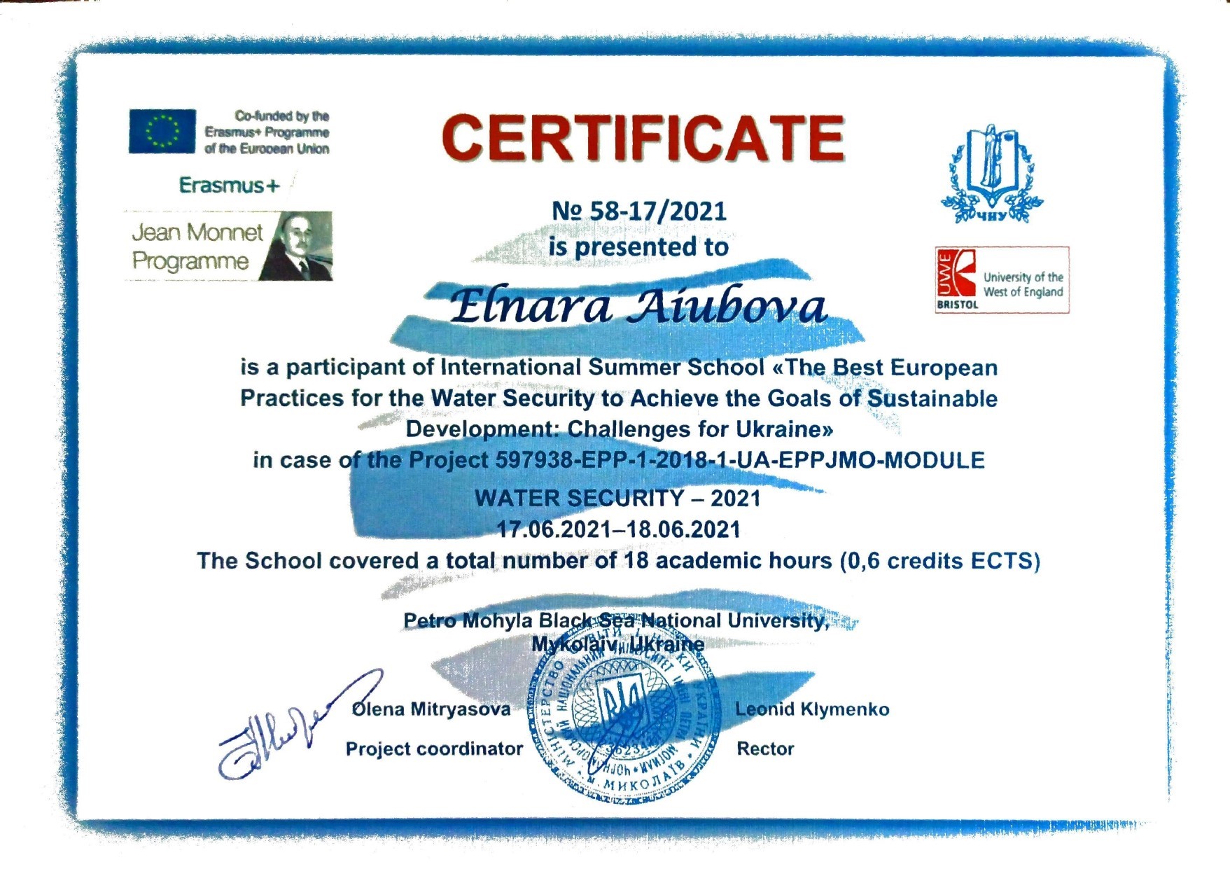 «The Best European Practices for the Water Security to Achieve the Goals of Sustainable